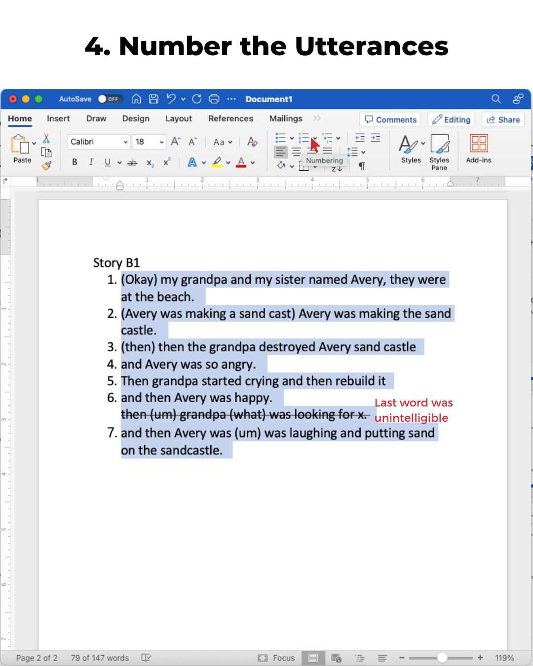 4. Number the Utterances
